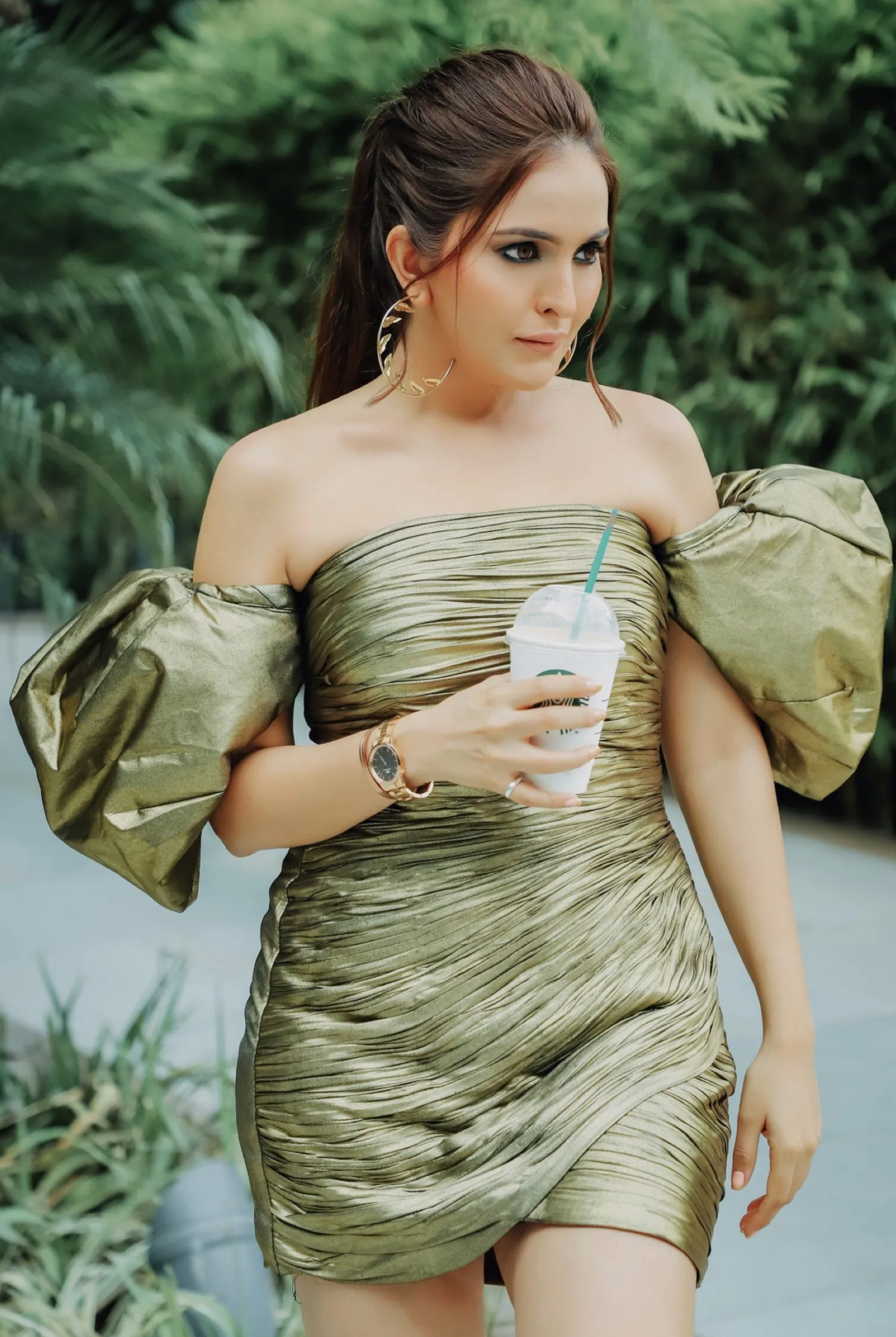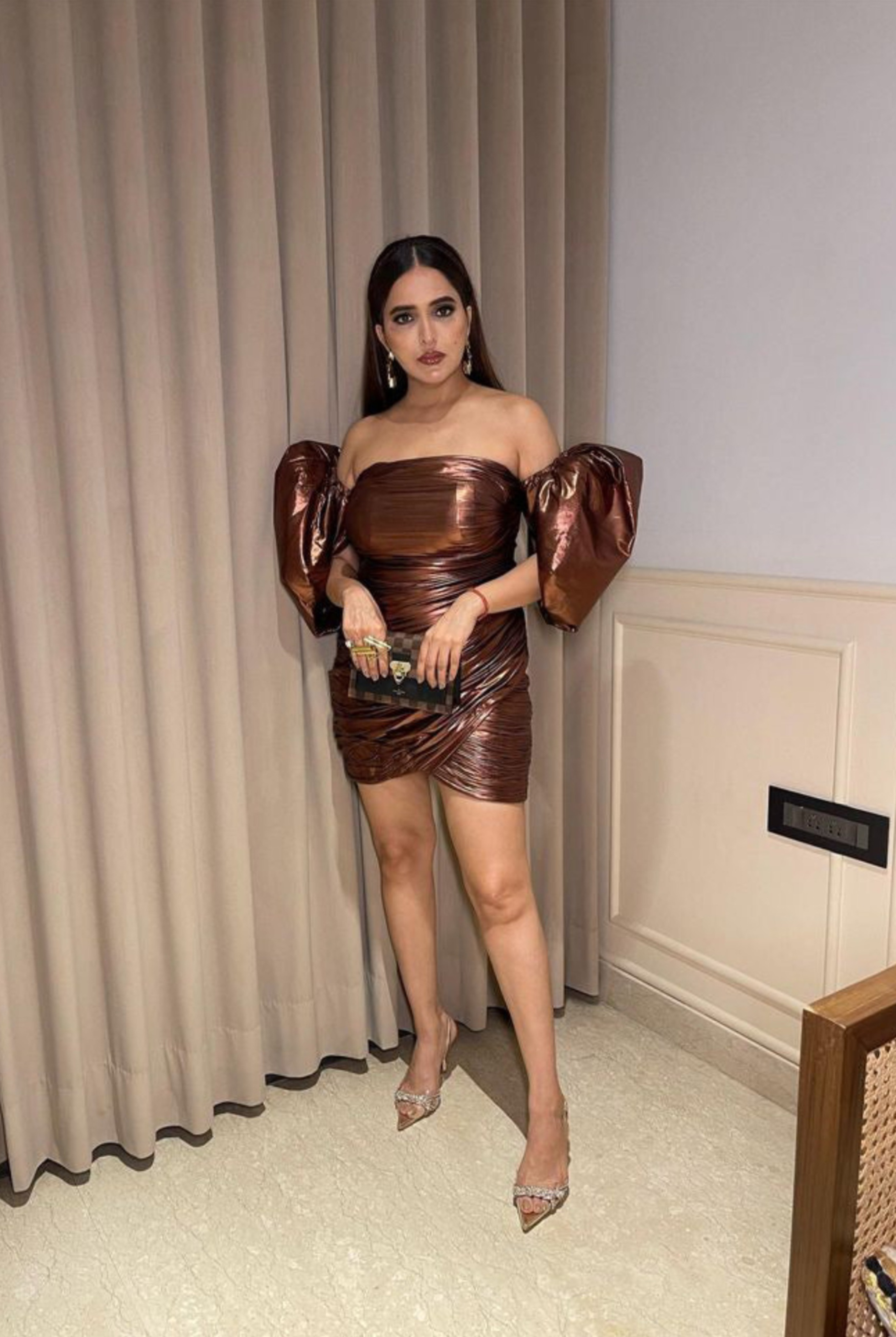 I loved how this metallic pink dress turned out on me — it’s bold, glamorous, and perfect for a night setting. The structured drape detail adds a chic, high-fashion touch, and the shimmer catches the lights beautifully. The whole look feels elegant, confident, and very picture-perfect.✨💗