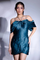 DETAIL- Satin ruched short dress with a draped bow to be worn upon shoulders. Padded and back zip