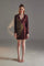 DETAIL- Brown colour front open blazer dress with chain detailing at right side and inverted triangle cut at the back. Shoulder pads and non padded
