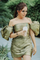 DETAIL- Off-shoulder ruched dress with detachable statement sleeves and plain back. Padded and back zip
