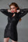 DETAIL- Black sequin short dress with full sleeves. Pleated chest and bottom with neck tie up. Padded and back zipper