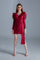 DETAIL- v neck short dress with a knee length hanging drape attached and cowl sleeves. Padded and back zipper