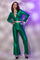 DETAIL- Metallic green crop blazer paired with matching waist cut pants. Non padded, hooked back for blazer and back zip for pants