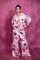DETAIL- Printed ring neck top with balloon sleeves paired with matching ring belted wide leg pants. Padded and side zip