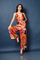 DETAIL- Satin print knotted flared leg jumpsuit with halter tie. Non padded and back zip.